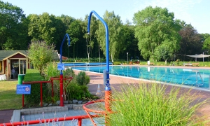 Waldschwimmbad-Lensahn Duschen Blumen am Beckenrand